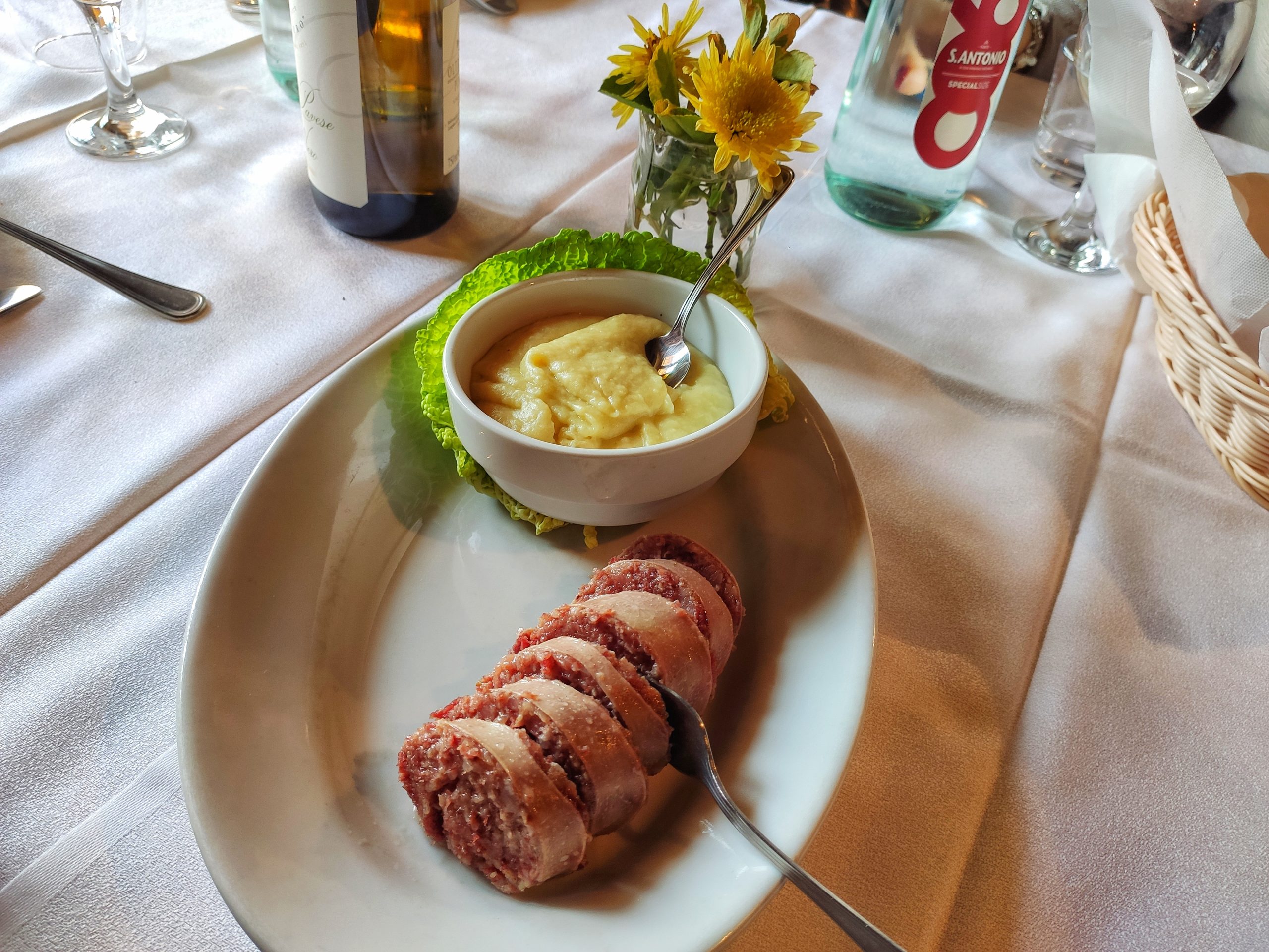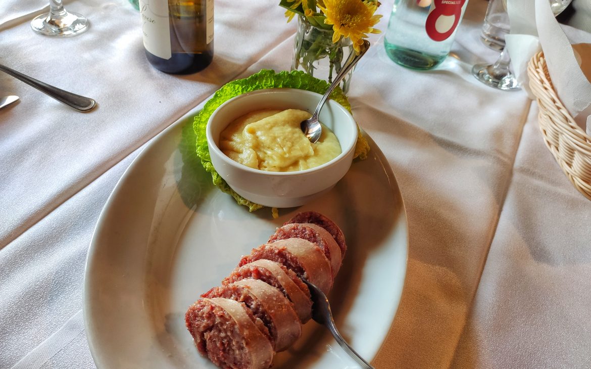 I salumi sono fantastici, dal sapore si sente che sono fatti in casa così come il cotechino. Per quanto riguarda il purè, la patata copre quasi totalmente il sapore di finocchio, infatti l’avrei preferito con un sapore più marcato. Il restante degli antipasti sono nella media, senza infamia e senza lode.