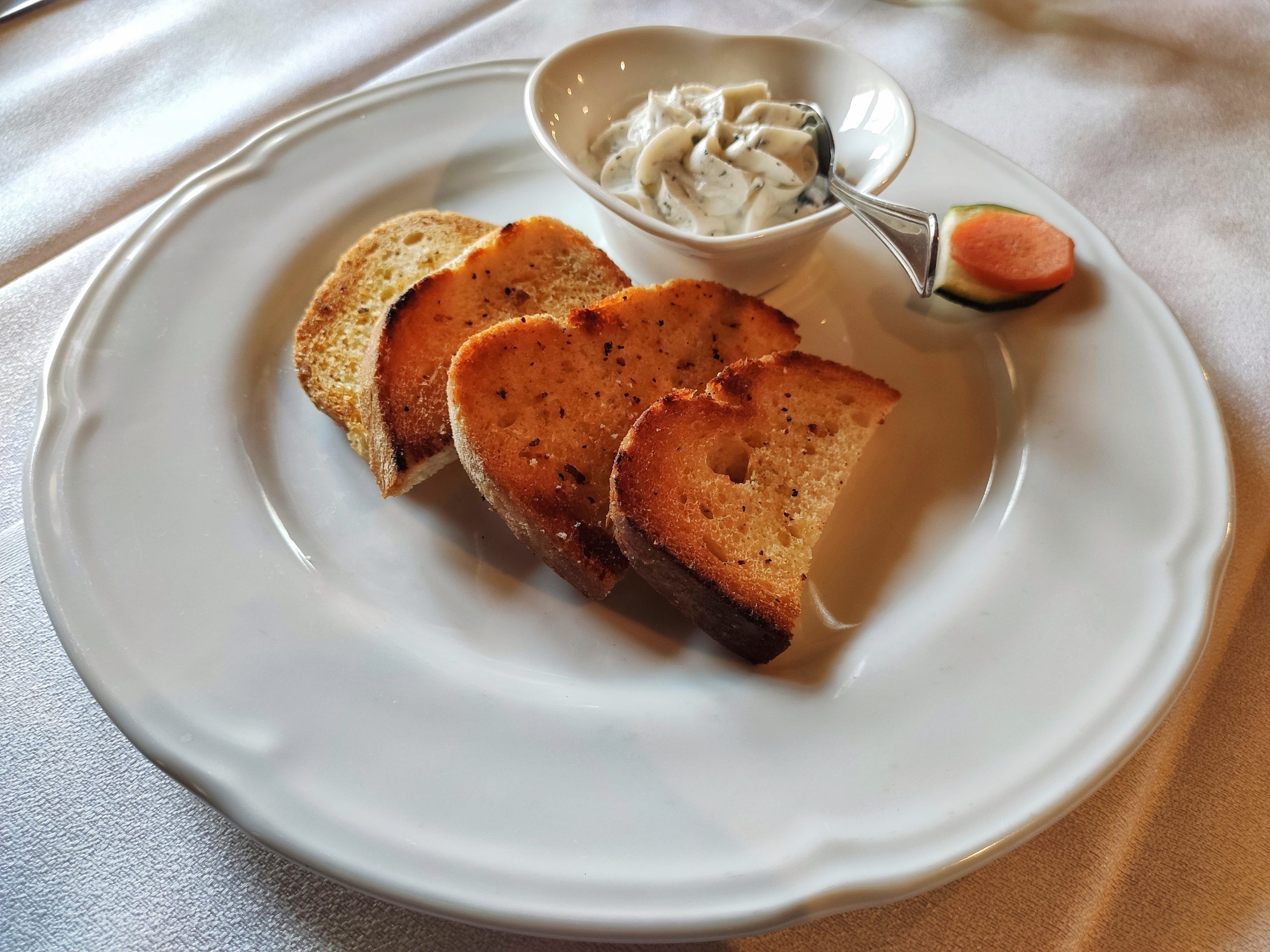 - Crostino di pane grigliato con caprino e maggiorana
