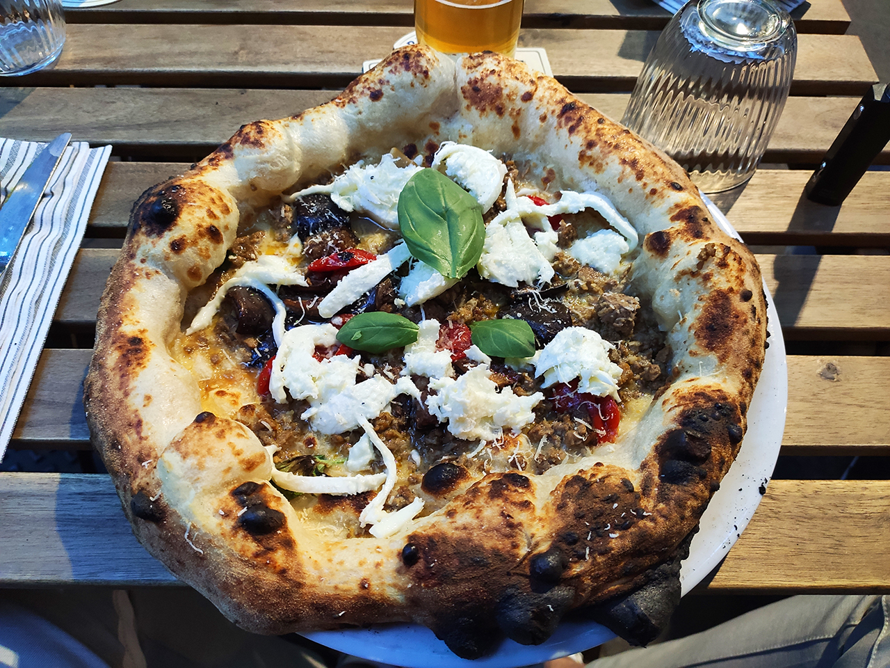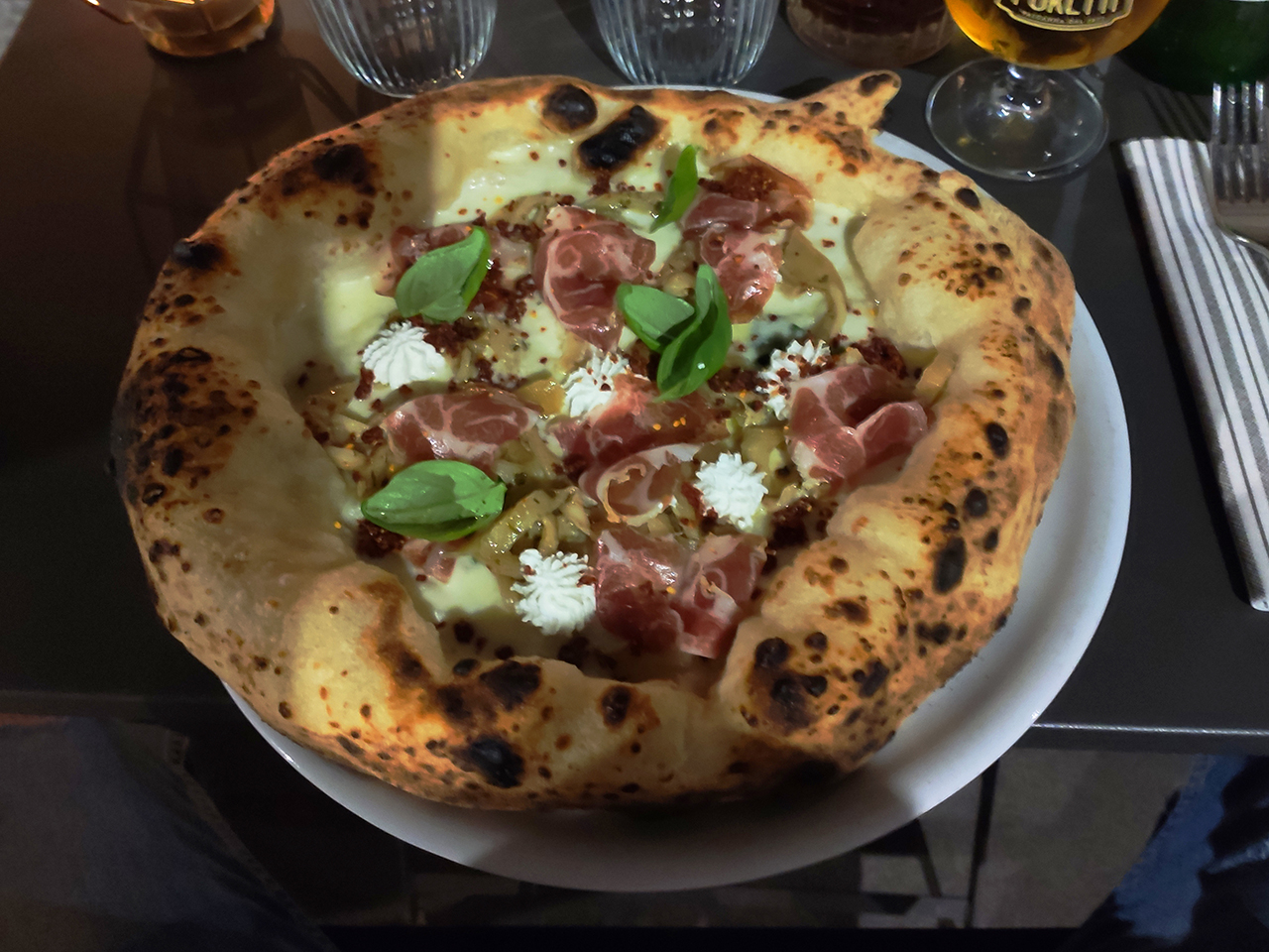 Alla riapertura Cocciuto è stato il primo locale in cui sono andato a mangiare e per ben due volte nel giro di nemmeno un mese. La prima volta sono capitato mentre era presente nel menù la special del mese realizzata per il lancio del videogames Giapponese NieR Replicant. Gli ingredienti, visto l’evento, si ispiravano tutti al Giappone ed erano i seguenti: patate Satsumaimo, ricotta di soia fatta in casa, controfiletto di wagyu in carpaccio laccato con una salsa di miso fermentato, aceto di riso, salsa di soia, cipollotto fresco Negi e chips di alga Nori croccante. Ingredienti molto particolari e mai visti prima su una pizza che potevano far storcere un po’ il naso, ma il sapore e la consistenza erano unici.
