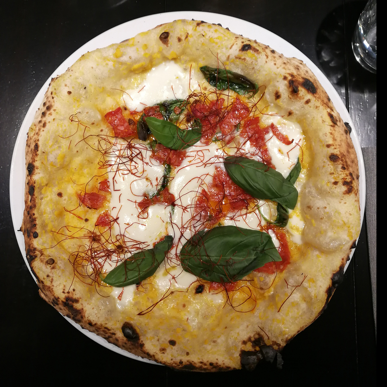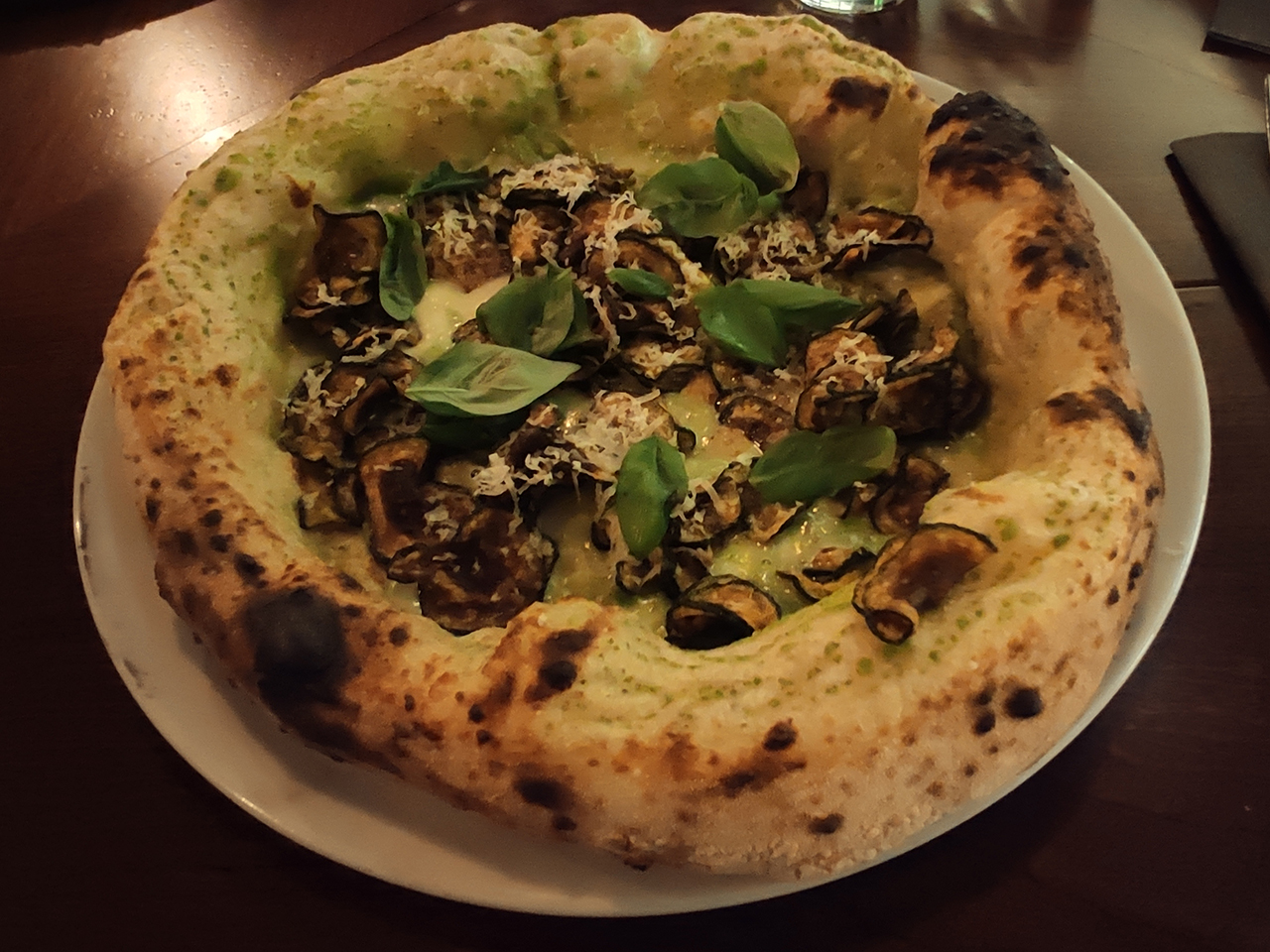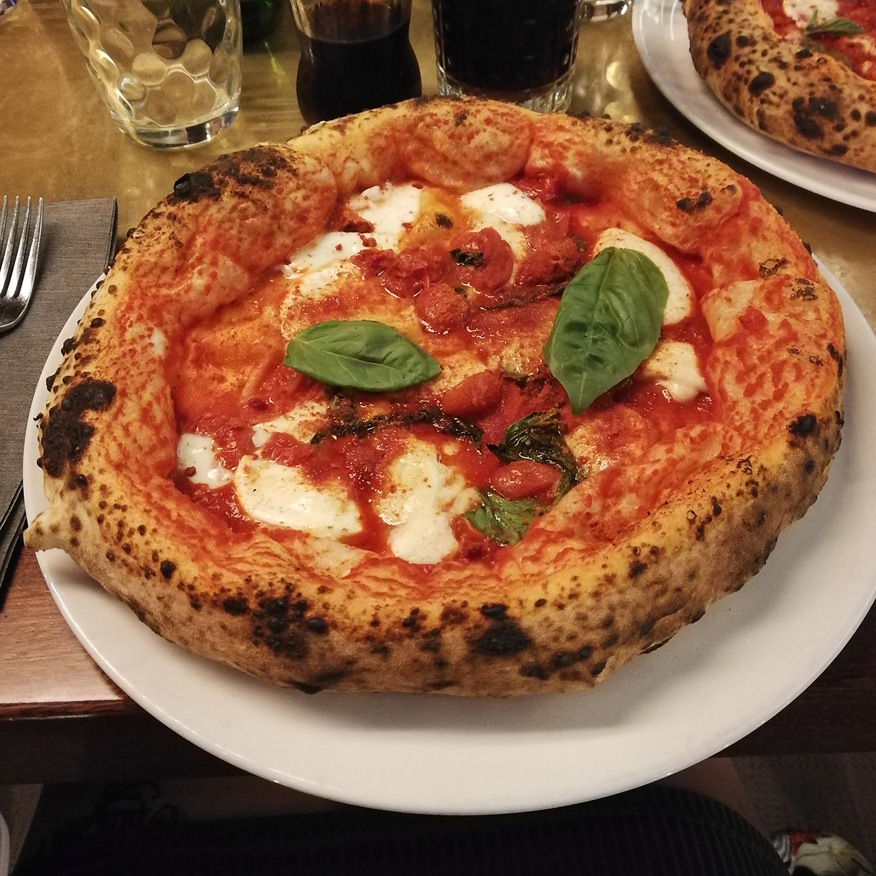 Il menù presenta sia le classiche pizze tradizionali (bufala, margherita e marinara) sia una vasta scelta di pizze rielaborate in chiave contemporanea ispirate alla tradizione. Gli ingredienti utilizzati sono di ottima qualità, ben distribuiti sull’impasto e combinati in maniera eccellente.