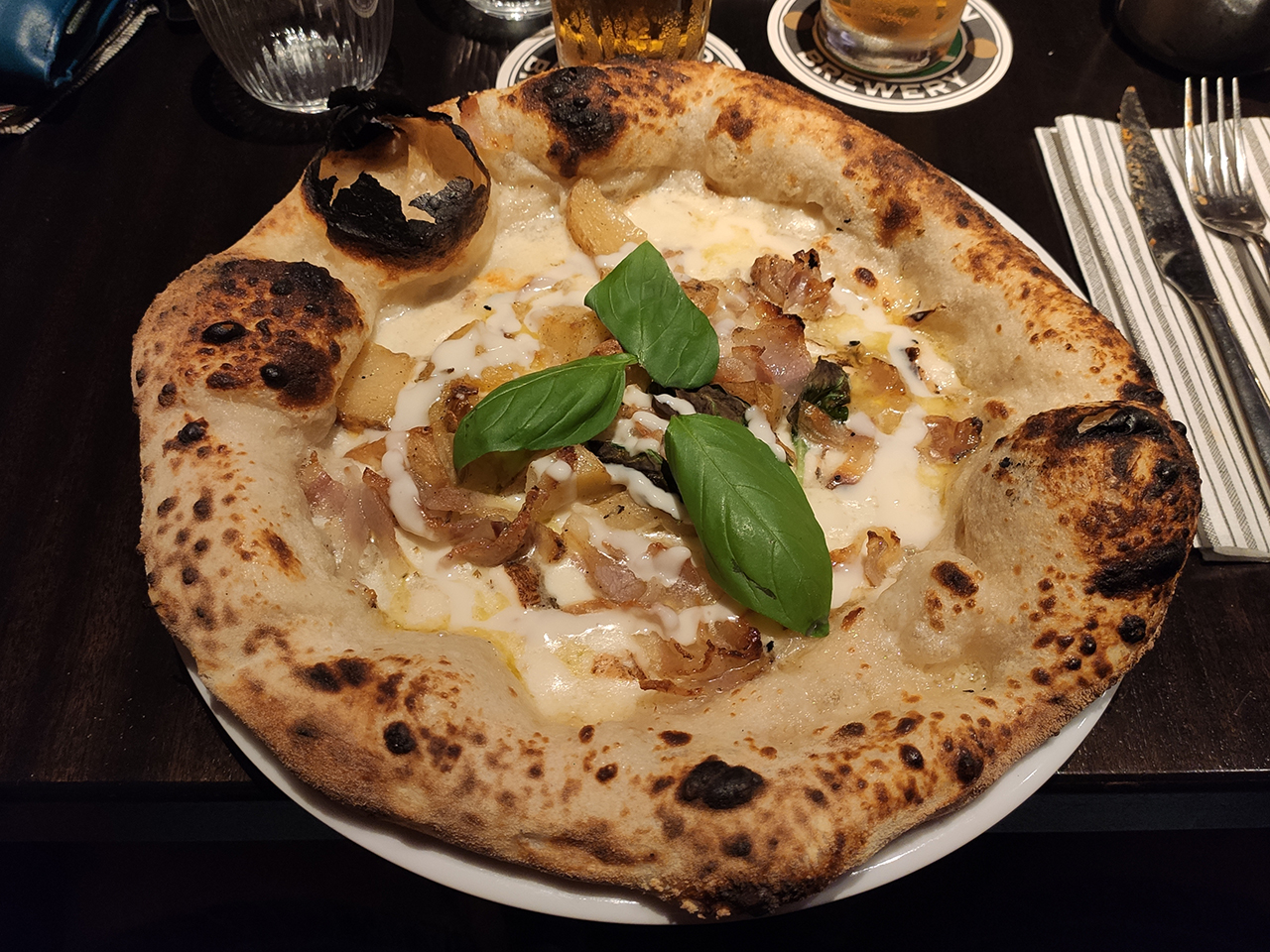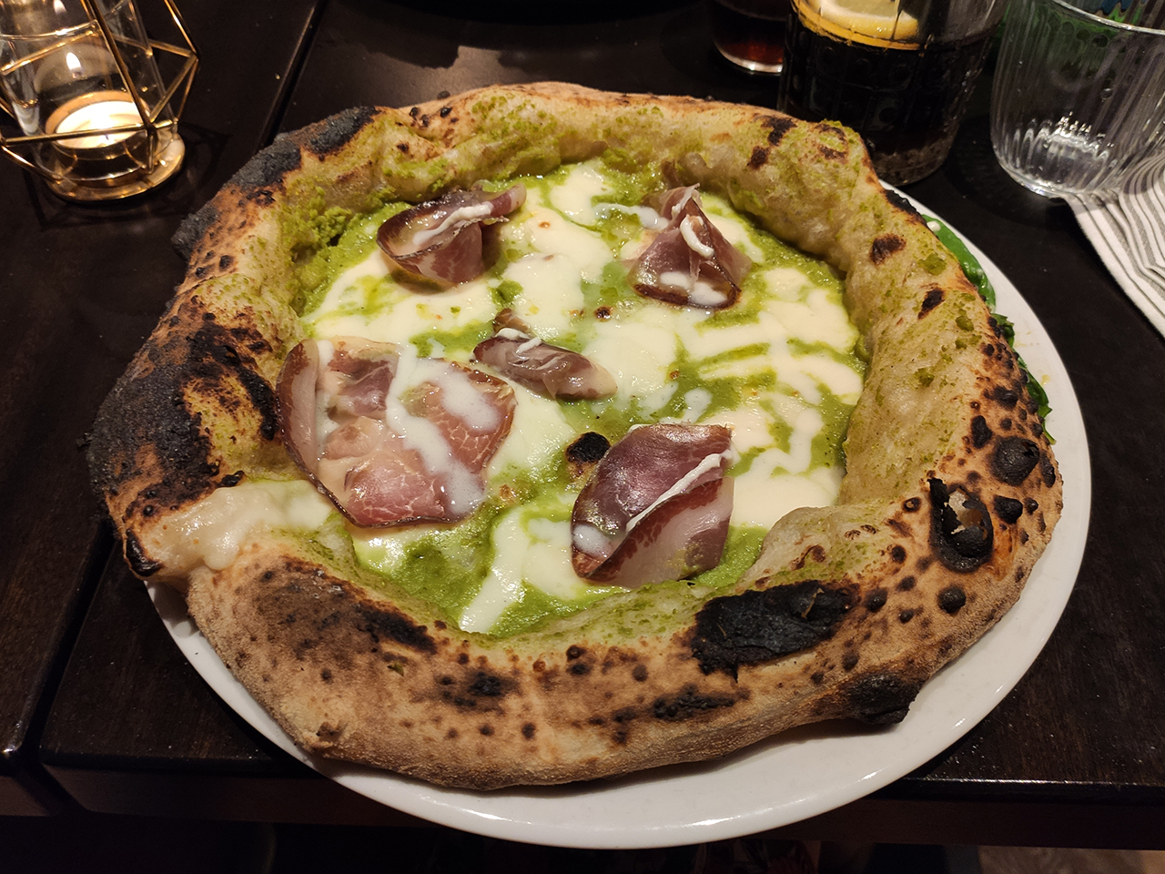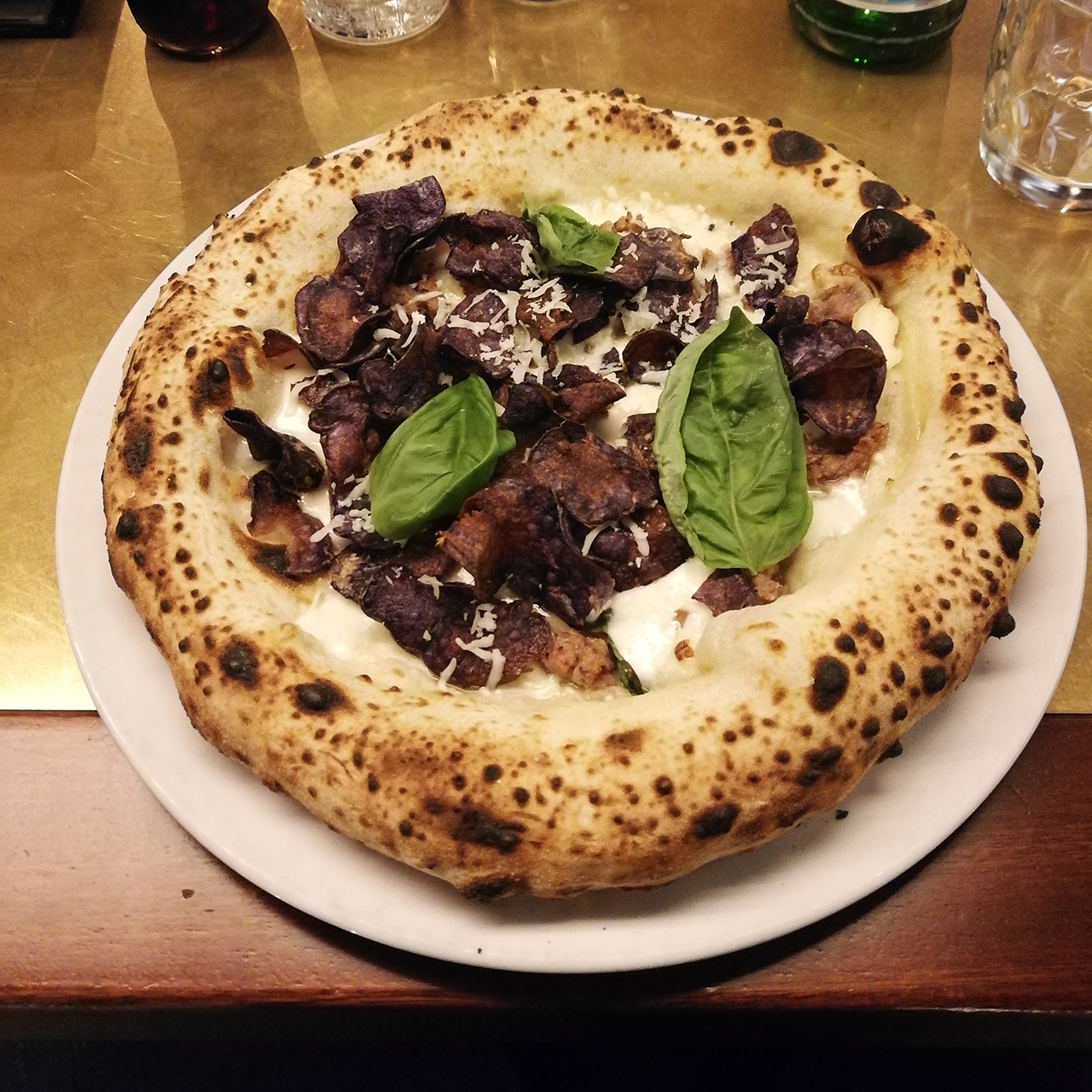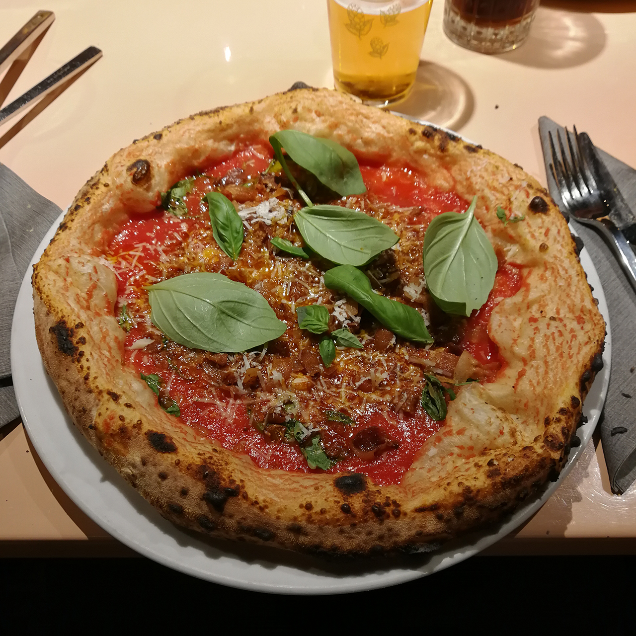 Il menù presenta sia le classiche pizze tradizionali (bufala, margherita e marinara) sia una vasta scelta di pizze rielaborate in chiave contemporanea ispirate alla tradizione. Gli ingredienti utilizzati sono di ottima qualità, ben distribuiti sull’impasto e combinati in maniera eccellente.