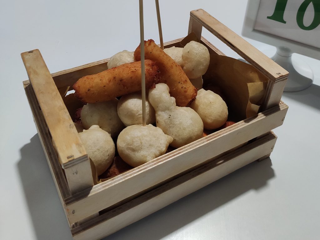 La degustazione è iniziata con un mix di fritturine che comprendeva zeppoline, crocchè di patate, supplì, polpettine, olive all’ascolana, polpettine di melanzane e mini frittatine. Il fritto è risultato molto asciutto, fritto alla perfezione e gustoso.