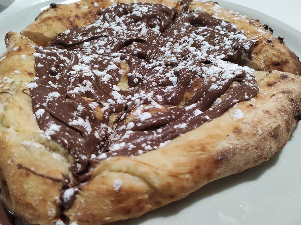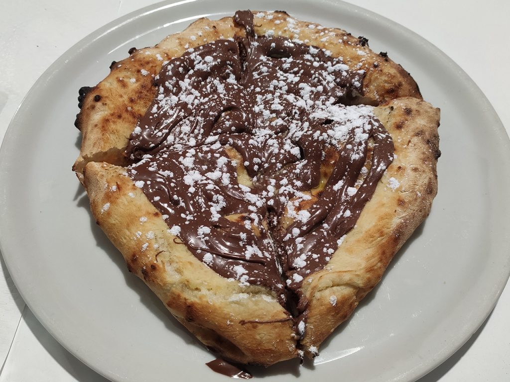 Pizze entrambe buonissime, soprattutto la seconda dal sapore deciso ma allo stesso tempo delicato visti gli accoppiamenti degli ingredienti utilizzati. In generale abbiamo un ottimo impasto, ben lievitato e altamente digeribile. Unico neo ma veramente lievissimo, forse un po troppo cotta in alcuni punti, ma credo sicuramente sia stato un caso più unico che raro. Per concludere in bellezza non poteva mancare una squisita pizza con la Nutella.
