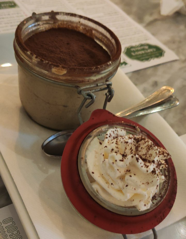 In fine per concludere in bellezza la serata non poteva mancare il dolce, così mi hanno consigliato un tiramisù con crema di ricotta di bufala al caffè (al posto del mascarpone). Sapore particolare che grazie alla sostituzione del mascarpone con la crema di ricotta, rende il tiramisù molto più delicato e leggero.