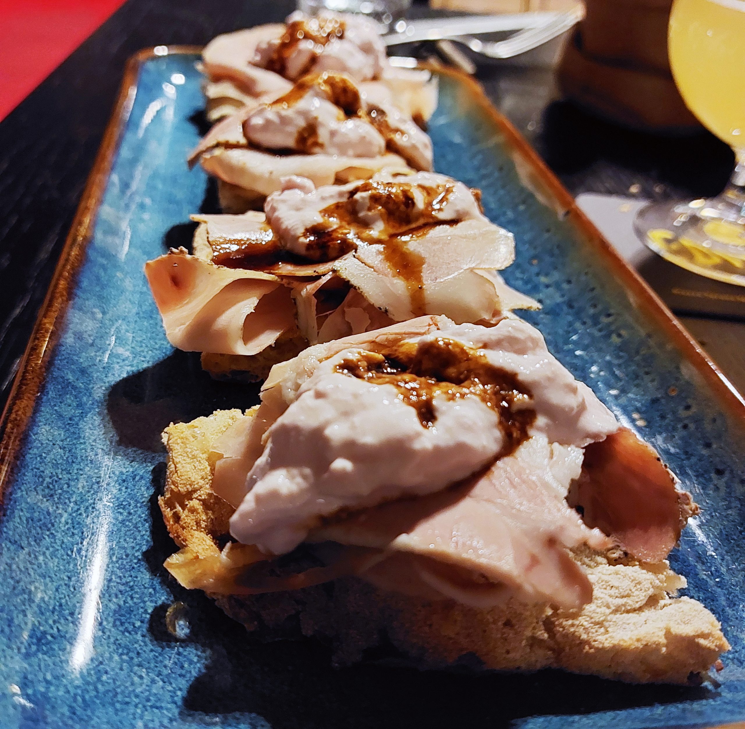 Il menù è particolare e sfizioso e prevede tapas e piatti con un forte richiamo alla cucina piemontese come ad esempio i bon bon di salsiccia di Bra e robiola, il tris di tomini, l’agnolotto fritto e il bacon cheeseburger con medaglione di Fassona da 180gr. Nel menù troviamo anche i pinsotti, delle pinse lievitate 30 ore, cotte su pietra, farcite in svariati modi e servite in tranci per essere condivise con tutto il tavolo. Ad accompagnare il tutto ci sono le 10 birre artigianali che scorrono fresche alla spina direttamente dal tank di fermentazione, oppure è possibile scegliere fra una pregiata selezione di cocktail ideata dai loro professionali bartender.