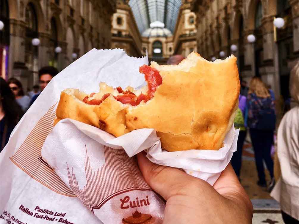 Luini è uno dei posti più famosi e storici di Milano. Infatti è stata proprio la signora Giuseppina Luini che, giunta a Milano nel 1949, ha avuto l’intuizione di far conoscere i tipici panzerotti pugliesi agli abitanti di Milano. Anno dopo anno Luini ha avuto sempre più successo facendo diventare il panzerotto pugliese di Luini uno dei prodotti tipici più famosi della città.