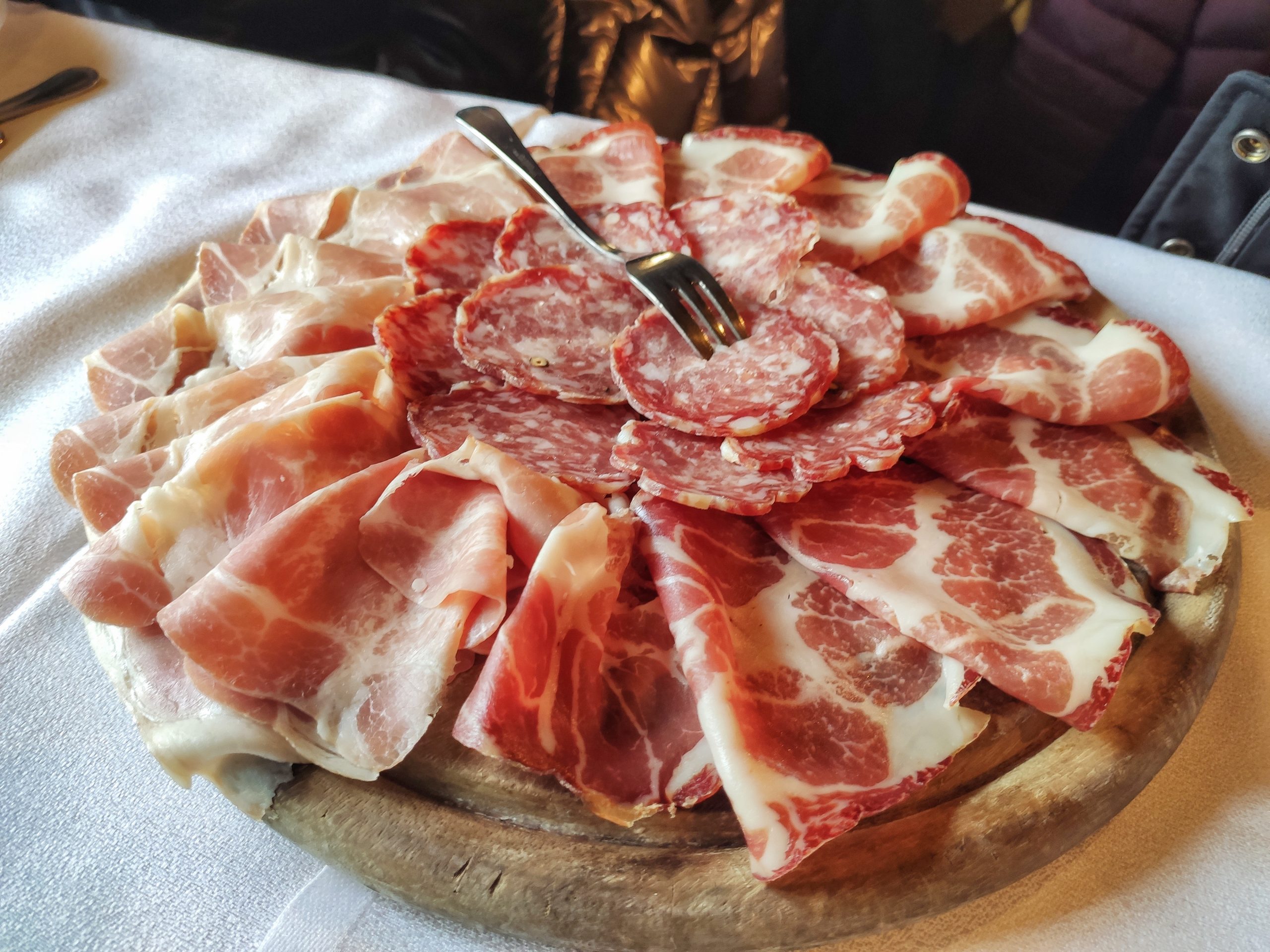 Qui siamo a Parma in una tipica trattoria chiamata per via della sua vicinanza al tribunale di Parma. In questo locale si possono gustare tanti piatti legati alla cucina Emiliana come la torta fritta, salumi locali come il famoso Prosciutto Crudo di Parma, tagliolini al culatello e tanti altri piatti tipici. Per maggiori info potete dare un’occhiata al mio articolo dedicato.
