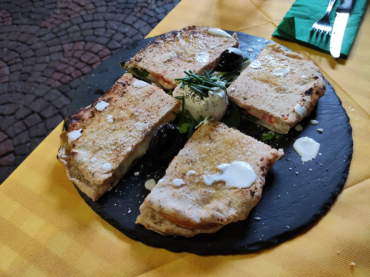Appena seduti al tavolo e prima di ordinare vi viene servito un calice di prosecco accompagnato da un assaggio di Pometto, un panuozzo farcito con provola affumicata, rucola, pomodorini e ‘nduja. Il menù è composto da solo tre pizze: Una Bella Margherita DOP, Una Gustosa Marinara DOP e Delicata Bianca Special. Oltre queste tre potete chiedere una pizza a scelta del pizzaiolo che in base agli ingredienti e alla sua inventiva vi proporrà una pizza fuori menù oppure scegliere il Pometto, un panuozzo presente in due varianti una normale e una piccante entrambi farciti con provola affumicata, rucola, pomodorini e grana con la ‘nduja aggiunta ovviamente nella versione piccante.