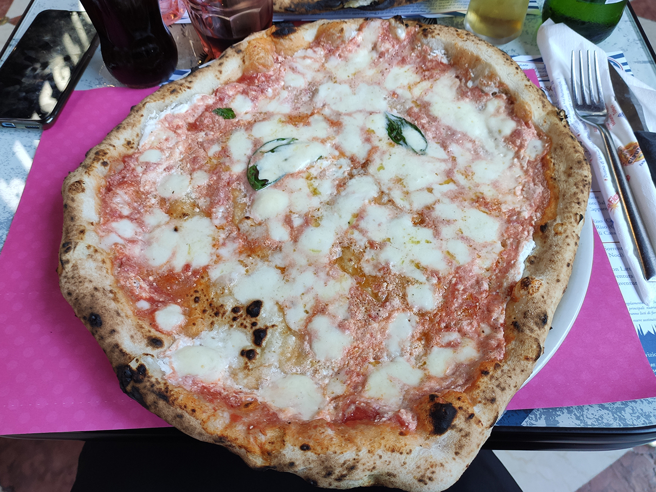 Comincio quindi con ordinare una crocchetta di patate e una frittatina di pasta d dividere per due. Buonissime entrambe, soprattutto la frittatina. Poi passo alle pizze scegliendone due da dividere a metà per provare due gusti diversi. Una è la cicoli, ricotta e pepe mentre l’altra è la Pizza di Barbie (scelta dalla mia ragazza) una pizza realizzata da Sorbillo in collaborazione con la Mattel con un significato: inseguire sempre i propri sogni per diventare ciò che si desidera. Infatti vieni servita con una tovaglietta con scritto un messaggio che recita “puoi essere tutto ciò che desideri”. La pizza è farcita con crema di ricotta rosa (ricotta fresca con aggiunta di pomodoro biologico), fiordilatte, olio evo e basilico.